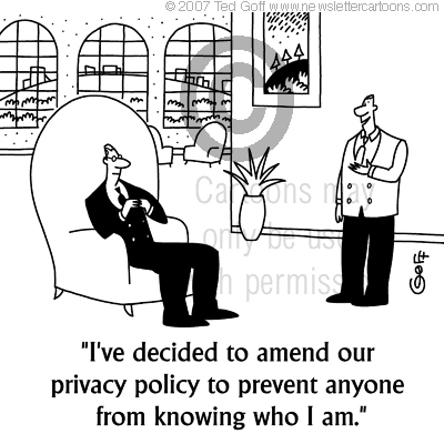 Topics: 5663 business "I ve decided to amend our privacy policy to prevent anyone from knowing who I am." management