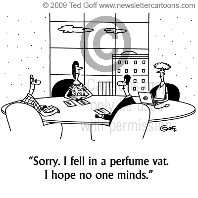 Topics: 6306 business "Sorry. I fell in a perfume vat. I hope no one minds." office odor smell cologne hygiene