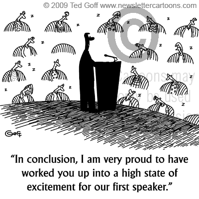 General Cartoon # 6309: In conclusion, I am very proud to have worked you up into a high state of excitement for our first speaker.