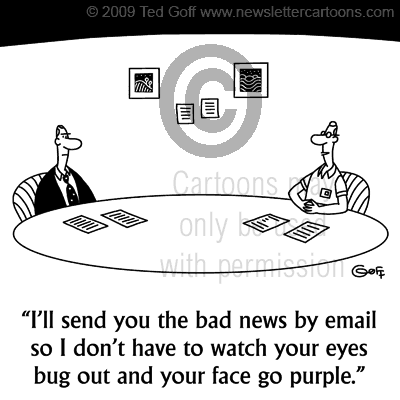 Office Cartoon # 6348: I'll send you the bad news by email so I don't have to watch your eyes bug out and your face go purple.