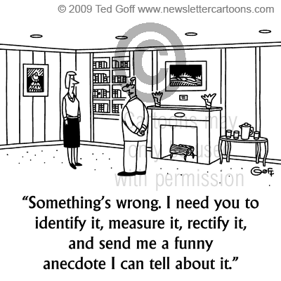 Management Cartoon # 6363: Something's wrong. I need you to identify it, measure it, rectify it, and send me a funny anecdote I can tell about it.
