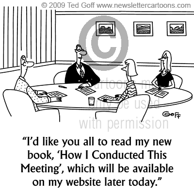 Topics: 6364 business "I'd like you all to read my new book, 'How I Conducted This Meeting,' which will be available on my website later today." management leadership online meeting