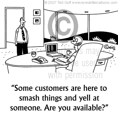 Topics: 5688 business "Some customers are here to smash things and yell at someone. Are you available "